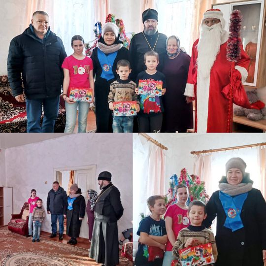 В первые новогодние дни, 4 января, мы посетили семью, где дети нашли свой новый дом и любящих их людей. Мы замечательно провели время с Денисом, Ангелиной и Андреем, опекуном которых является бабушка Нина Васильевна Босько. Дети рассказывали стишки и получали от Деда Мороза подарки. Гости с ребятами пели песни и водили хоровод под известные новогодние музыкальные произведения. По окончанию доброго, весёлого и душевного мероприятия гости вручили ребятам сладкие подарки.